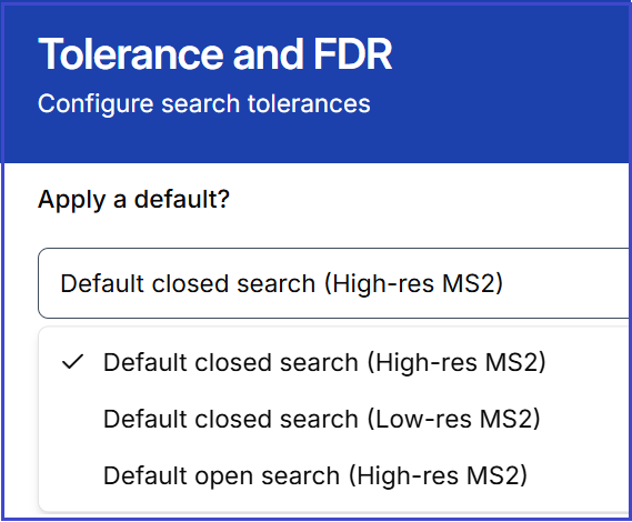 By default, SagePro searches high-resolution closed search. There are also options for low-resolution closed search and high-resolution open search.